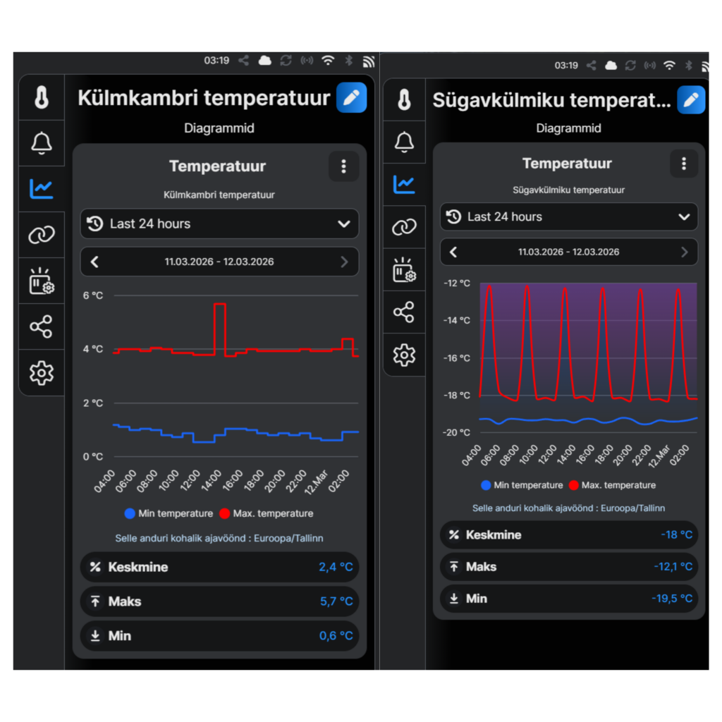 Temperatuuri jälgimine toimub veebiliidese, telefonirakenduse kaudu: